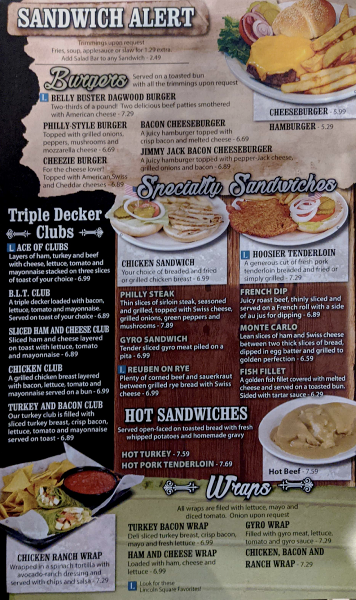 Favorite. Layers of ham, turkey and beef with cheese, lettuce, tomato and mayonnaise stacked on three slices of toast of your choice.