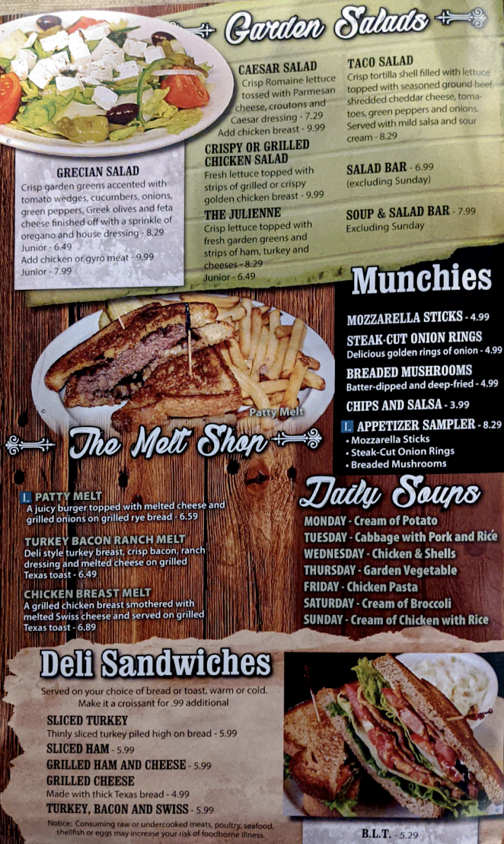 Crisp lettuce topped with fresh garden greens and strips of ham, turkey and cheeses