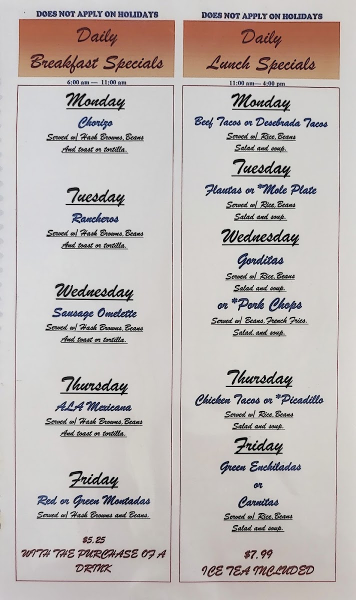 New Clock Steak Specials