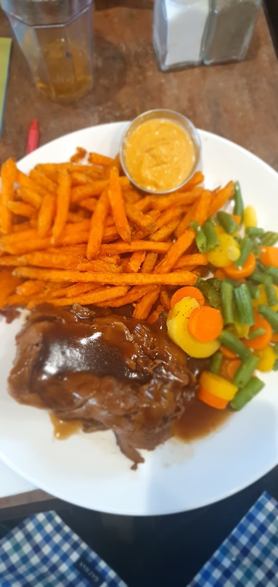 Smitty's Family Restaurant - Calgary East Hills is located at 185 E Hills Blvd SE #30, Calgary, AB T2A 7A6, Canada. This Family Restaurant has attracted 2189 user reviews. Its menu encompasses a range of dishes, including Eggs Benedict, Breakfast Bowl, Ultimate Mozza Burger, and Spinach & Hollandaise Sauce Omelette. Among the hearty meals, Roast Beef served with Sweet Potato Fries and vegetables is also a featured item.