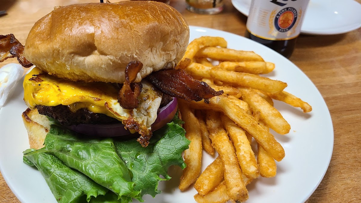 Our first time in and we will definitely return on our next visit to Morris. I'm not sure I have ever had a burger this tall before, I had to take more than half home for later. The beef was very well seasoned which made this one of the best burgers I have had. The onion rings on top had a very light and tasty breading and could be a perfect appetizer. The hubby got the pork nachos and he really enjoyed them. The chips were fresh, light and crispy. We did try the "rolls" and decided to do one of each flavor. They were all yummy the Macaroni and Cheese with bacon were our top favorite. I wish I had gotten more photos. The portion sizes were generous. The Moscow Mule was perfectly made, allowing the ginger beer and lime to shine. Service with a smile and a friendly staff rounds out a great dining experience.