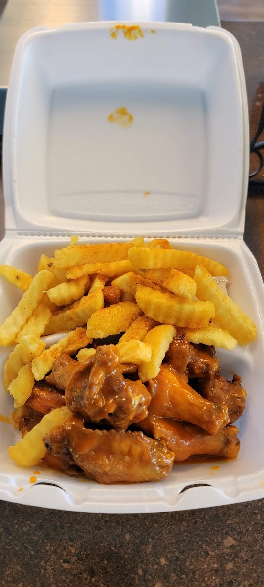 Wings are great!! Fries are awesome, too! I get lemon pepper wings, but w/only 1/2 seasoning they would normally put on them. Perfect My family all eat the honey BBQ wings, which are delicious!!