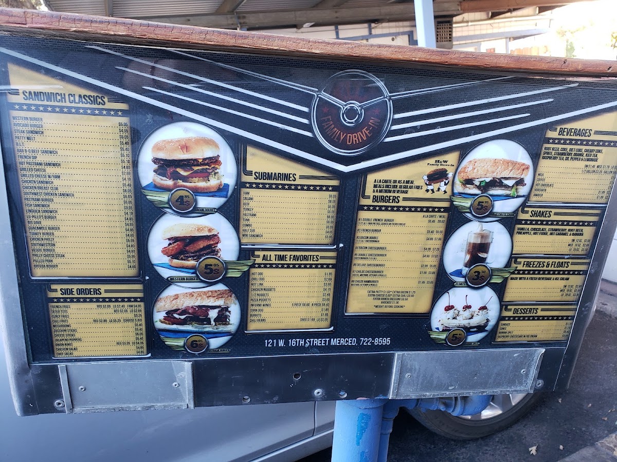 H & W Drive-In is a Fast Food Restaurant found at 121 W 16th St, Merced, CA 95340, United States. It has garnered a substantial 1870 user reviews. The menu is extensive, with notable items including Seasoned Fries, Avocado Burger, Patty Melt, Pastrami Burger and Fries, and Corn Dog. This drive-in establishment offers classic American fast food options in a convenient setting.