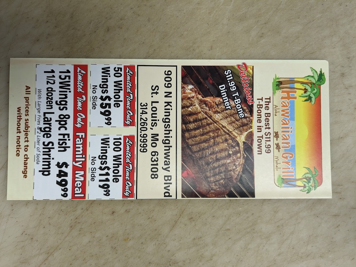 Comes with the following: 15pcs whole wings, 8pcs fish, 1.5 dozen(18pcs) shrimp, lg fries, 2l vess soda.