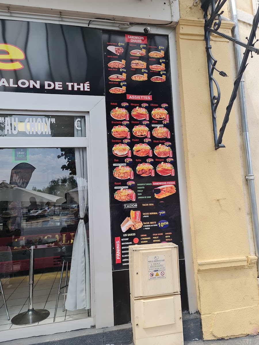 Paninis : - Chèvre - 3 Fromages - Saumon - Kebab - Steak haché - Poulet - Merguez - Chicken - Kefta - Nutella