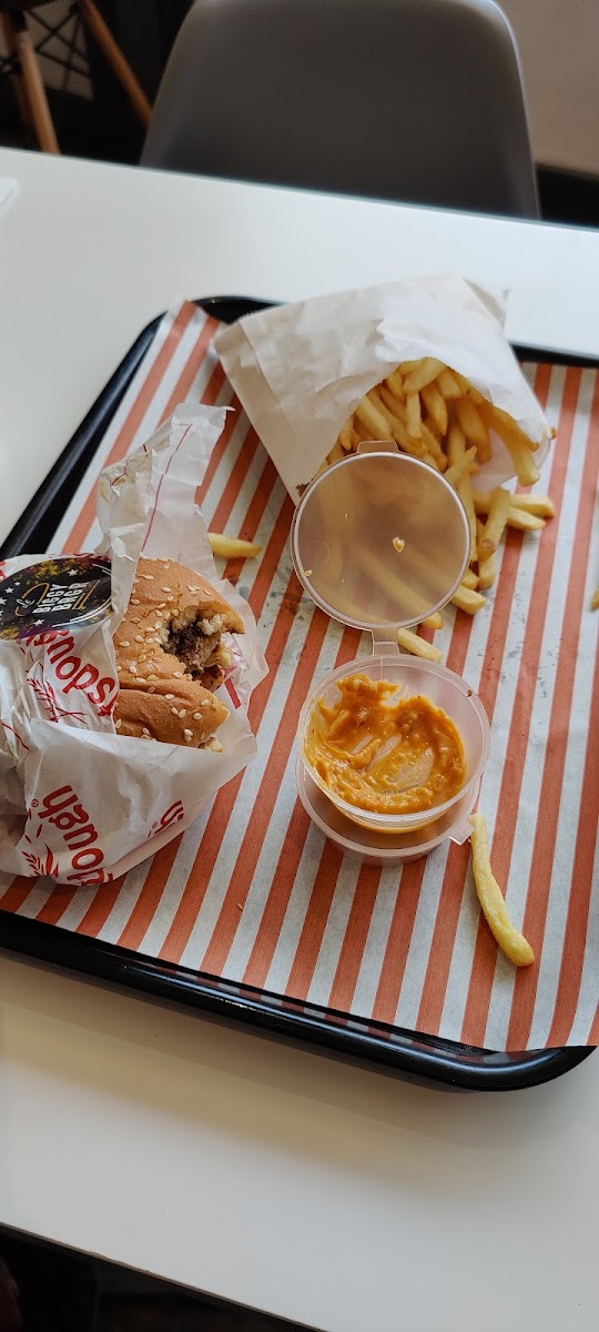 Had a really good experience. Had the double cheese burger and chips. The burger was delicious and the chips were generous in portion. Decently priced. The two young chaps who served us were brilliant, good service, polite, helpful and friendly. The seating area is small and basic. The negatives include: burger a bit small, my burger had too much tomato sauce and mustard and if sitting in, I recommend each order have a tray or provide disposable plates, hence 4 stars. I would go back as the burger was delicious and service excellent.