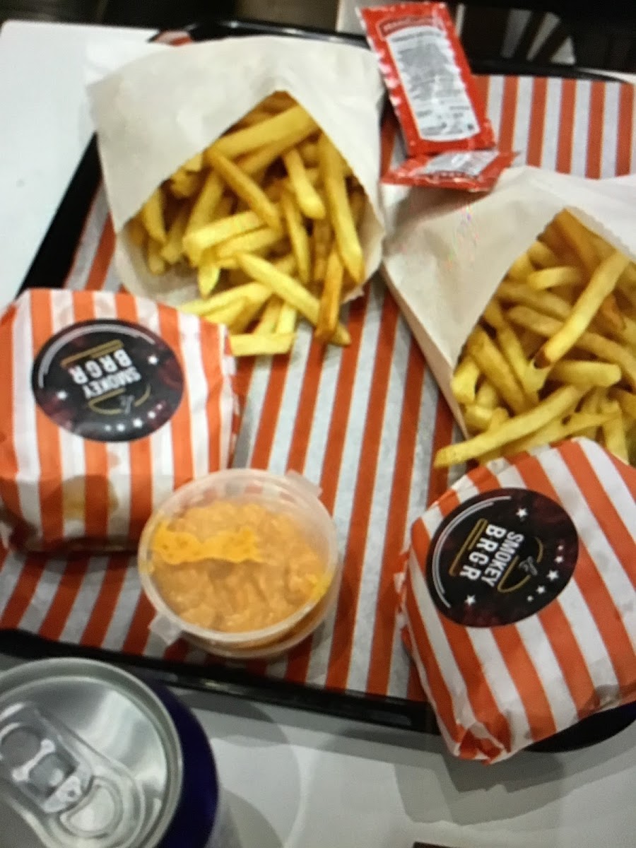 food was 10/10, don’t usually eat meat but their Smokey and smash burger tasted amazing, also chips had large portions and perfect crisp. Even through there was one guy working he did amazingly compromising taking orders and making food, food came in a good 15 mins. Definitely coming here again!