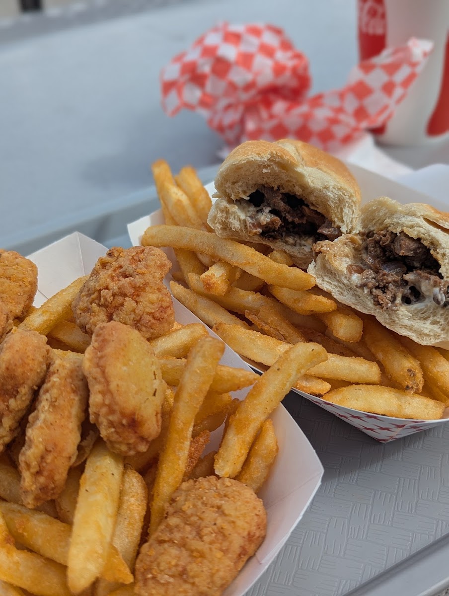 Classic made-fresh, small town burgers and shakes. They offer a variety of fries - their home style seemed fresh. Everything tasted so fresh and was thoroughly delicious... The wait was not fast (they wait until you order to start cooking), but the level of delicious was worth the wait! People tried a variety of shakes, cheeseburger, hamburger, chicken tenders, skinny fries, home style fries, and onion rings. Everyone was exceptionally happy with their food. We may have to make excuses to come back.