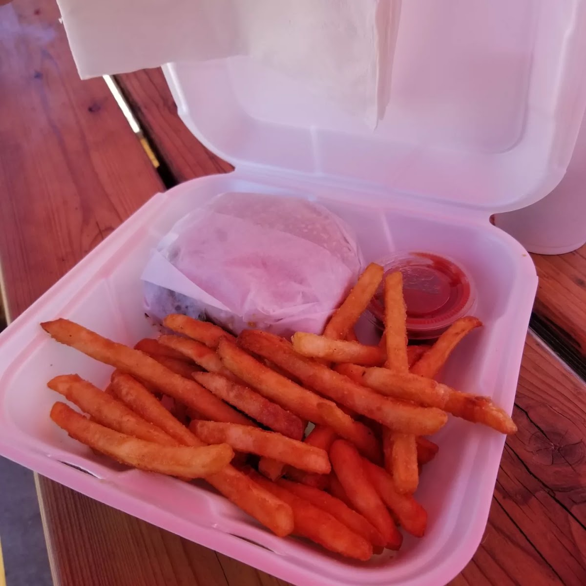 Used the drive-through. The service was great. Very friendly gentleman working the window. The patio area looks adorable. Decent amount of sitting for a small spot. Got 1/2 sweet tea, and it hit the spot. Along with a double teriyaki burger and large side of regular fries. All was delicious. The fries are SOO GOOD. Plus you don't see teriyaki burgers anymore, so that excited me. It's a new favorite spot when running between Paulden and Prescott. Love that it's a small business, too. Honestly, prices I feel are comparable with the price of most fast food spots these days. So, there are no complaints on price either.