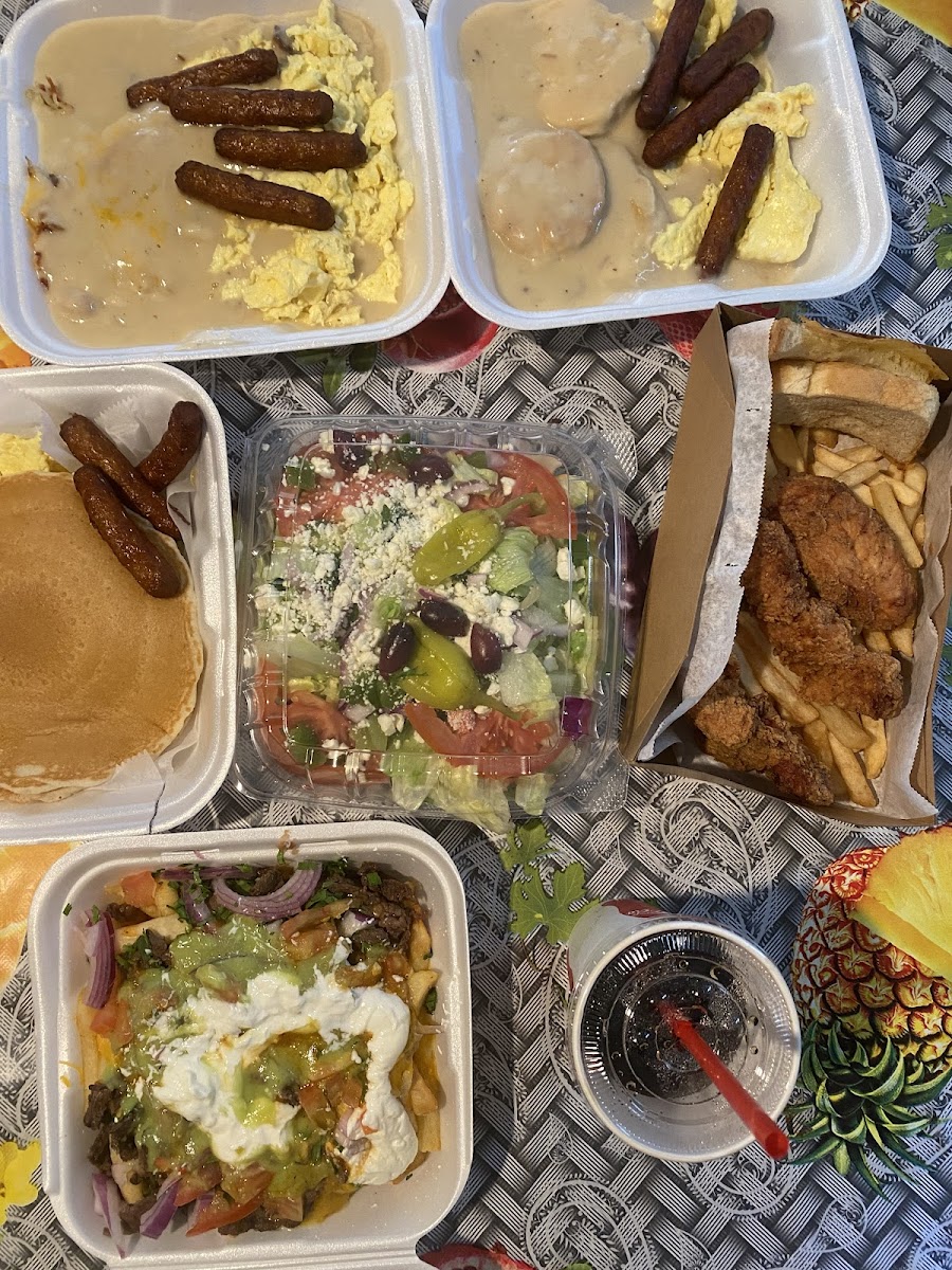 This place has variety of meals, fast food, sandwiches, plates, Mexican, and serve all day from 6AM to 10PM, so you can go for breakfast, lunch or dinner. I tried this Mexican plater, but discovered I'm not a big fan of this cousin, but overall the place and service was ok. One thing that I noticed, when you pay by Google or Apple Pay, they charge 45 cents charges per transaction, which wasn't justified for me!