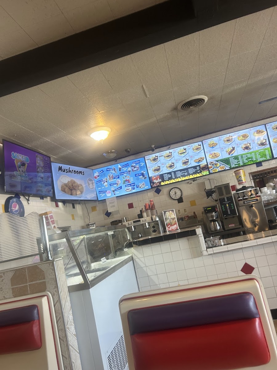 Compared to the McDonalds nearby, this place will give you a much better burger for a higher price. There's a good variety of food and frozen desserts here and all are fairly priced. It's a great place to hangout, and they even do raffles from time to time.