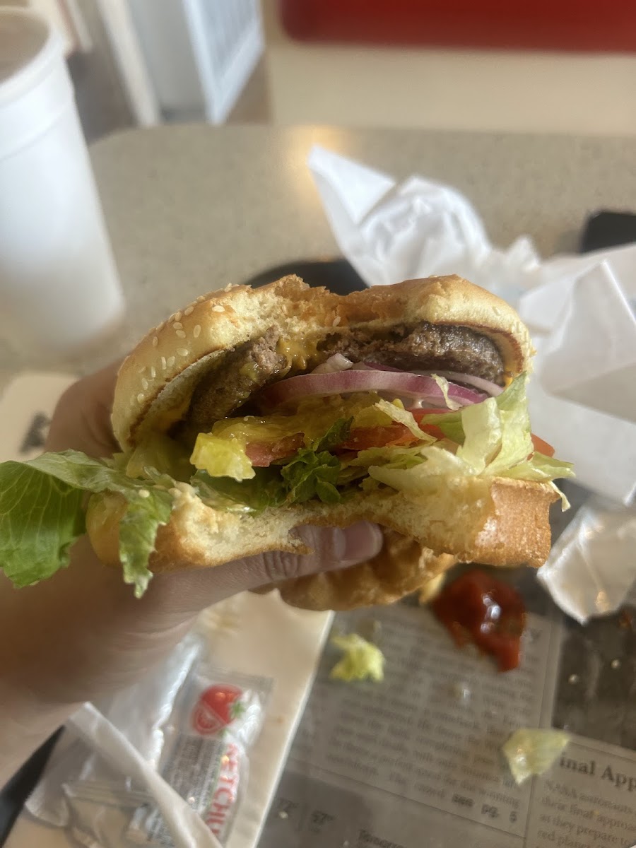Stopped for lunch on way back to SoCal. Food was good (fresh non+wilted veggies on my burger), good service, and clean bathroom (only one bathroom). Good family run burger joint. Also, easy to get on and off the freeway.