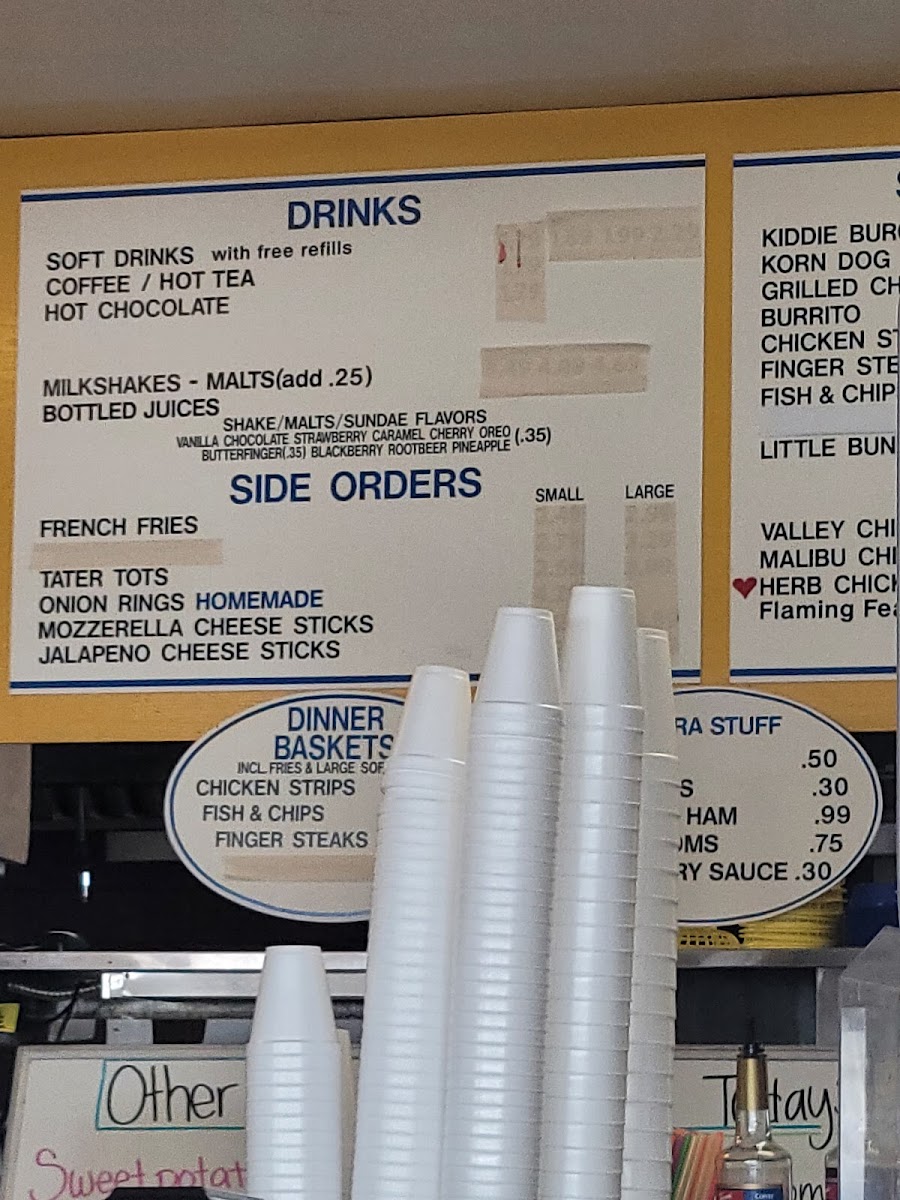 Vanilla, Chocolate, Strawberry, Blackberry, Raspberry, Cherry, Root Beer, Orange, Mint, Coffee, Pineapple, Banana, Marshmallow, Oreo ($0.35), Butterfinger ($0.35), Reese's PB cup ($0.35), Peanut Butter ($0.35), S'mores ($0.35)