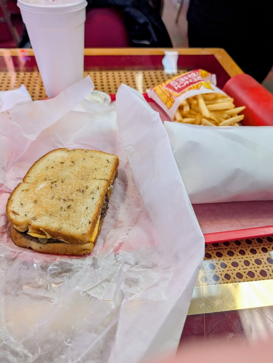 First time going here outta just sheer curiosity. Customer service is really friendly and the atmosphere is welcoming and gives you that diner feeling. Ordered a double cheeseburger and wasn't aware that was I literally getting two double cheeseburgers at once because I had 4 patties but it was a plus for me because I love burgers and was craving a burger lol. Burgers were pretty good.. could've used a tad more seasoning. Fries were good also...right amount of salt. Diner was nice and clean and I do want to go back and dine in with my family