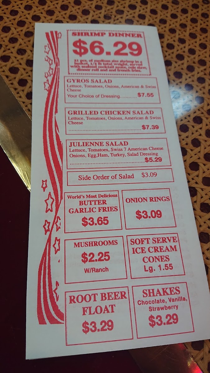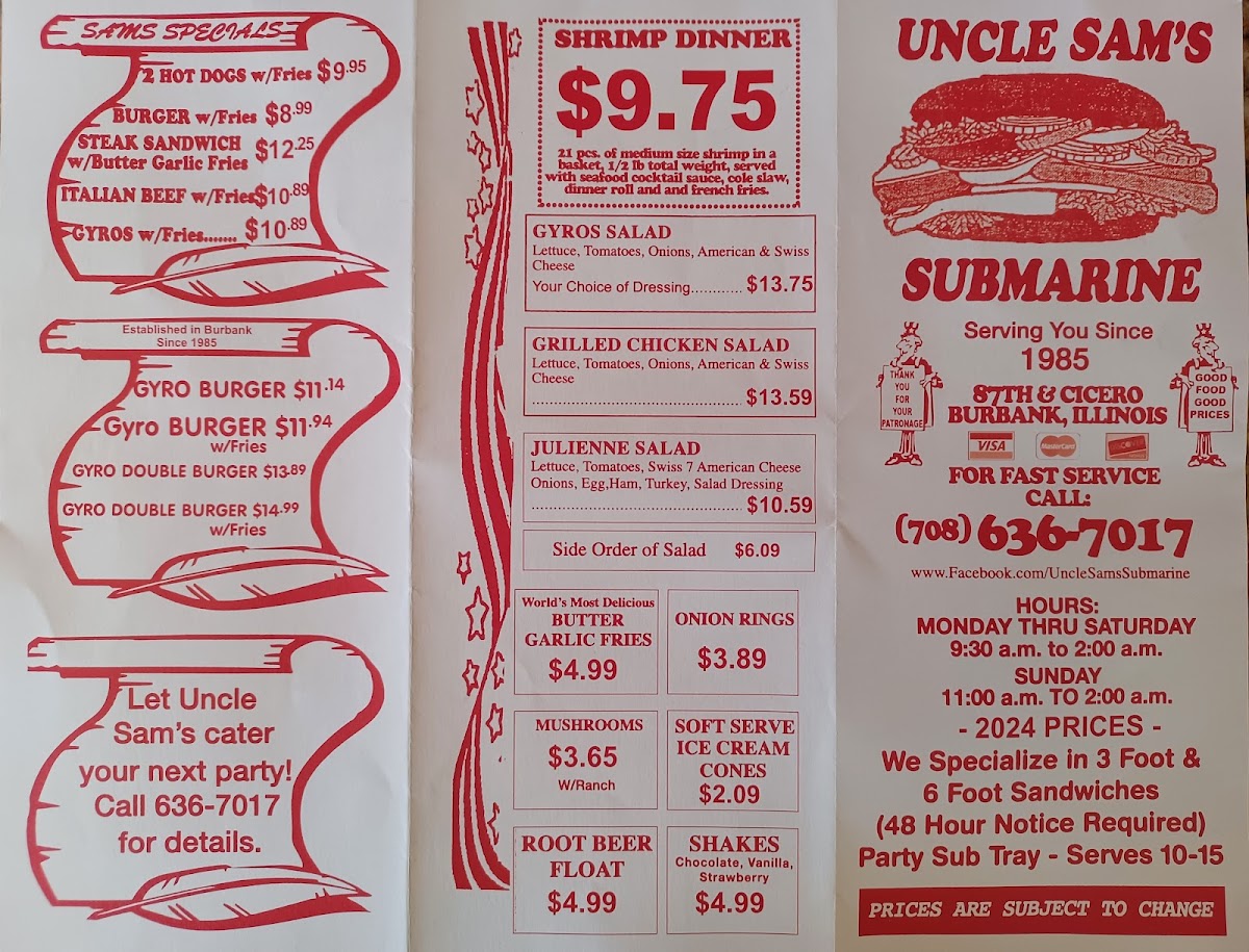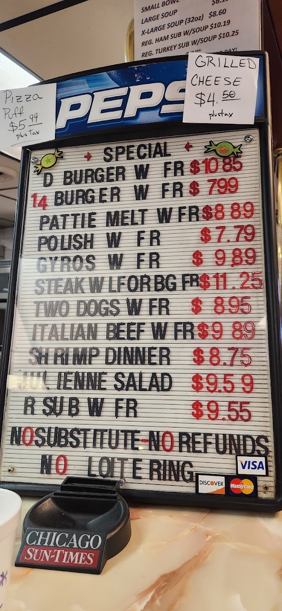 1/4 lb. (2 patties) 100% pure beef, served on sesame seed bun, topped with our special grilled onions, catsup, mustard and pickles