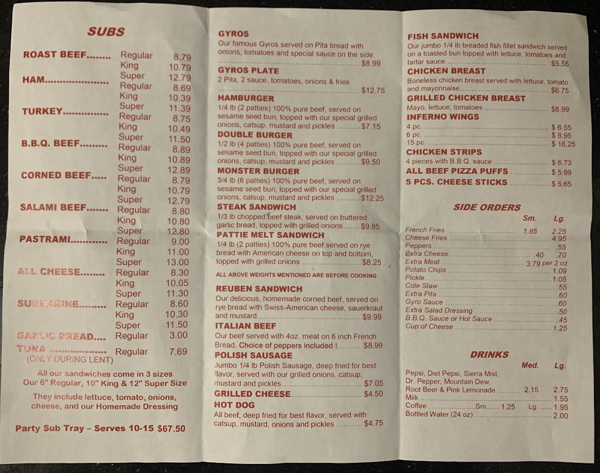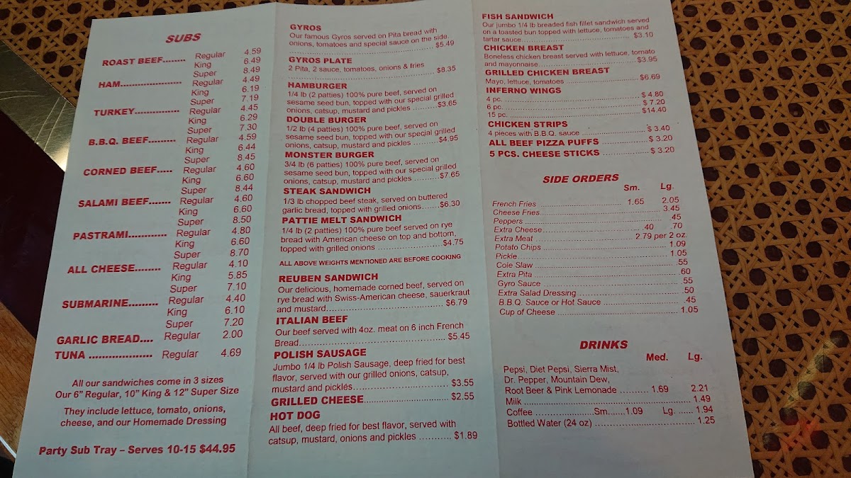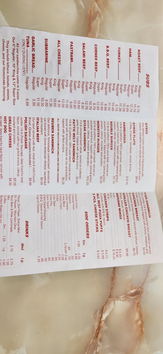 1/4 lb. (2 patties) 100% pure beef served on rye bread with american cheese on top and bottom, topped with grilled onions