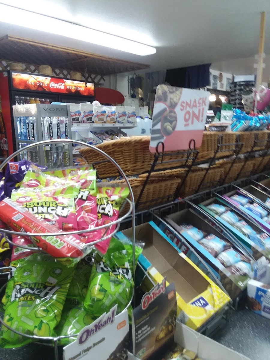 Uncle Tom's quick stop is awesome. Need gas, they got it, a piece of pizza yep, camping supplies they got ya, fishing bait sure, need a new knife? They got ya there too. Ice lots of it made on sight too pretty cool. Snacks, drinks, beer, wine. They also happen to be some of the nicest people on the planet.