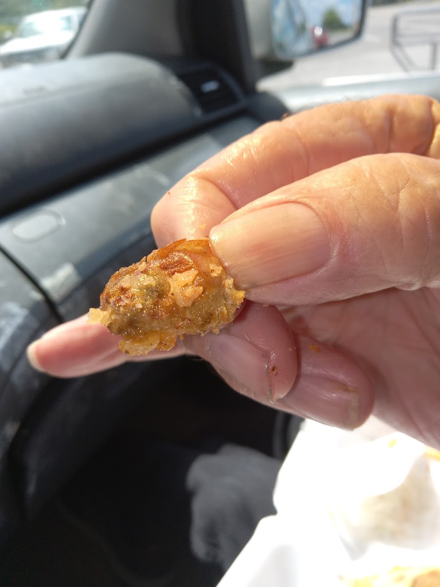 They have a drive-thru the food was hot The food is inexpensive and the food is good. I would say the green beans are straight out the can but add a little salt and pepper you'll be fine. The crab cake that they gave me could have been cooked a little more but it had a good taste. Overall good little place to stop when you're on 20 going east or west