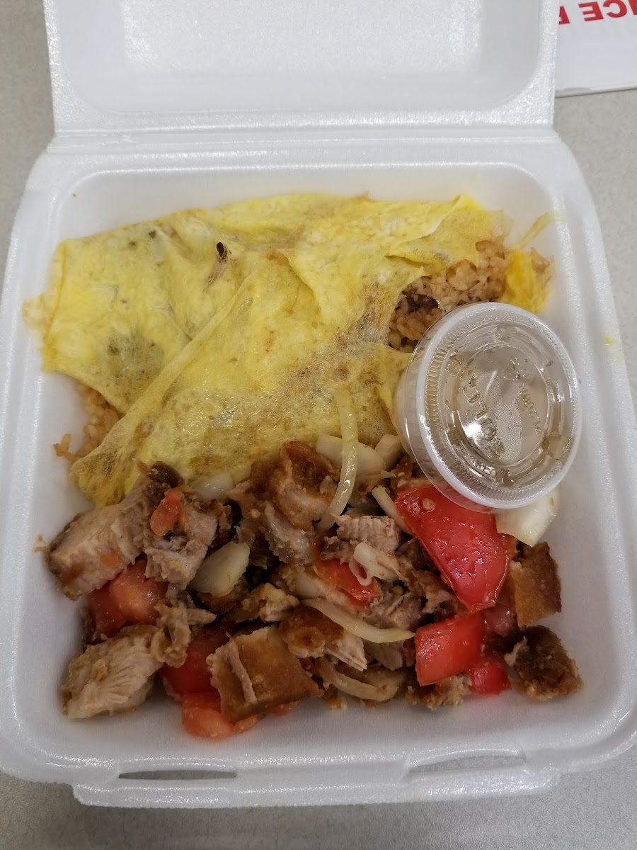 Came here for the first time. We ordered the adobo fried rice w/ Lechon Kawali, dinaguan and pinakbit, Lechon Kawali and Pansit, and a side order of 1 pancake. Everything tasted pretty good. The dinaguan wasn’t as good as it looked. The Adobo rice was pretty flavorful with the Lechon. The pansit noodles were ok as well. The pancake was very flavorful and had a nice crust. Staff are fast and friendly. Lots of parking and lots of tables to dine on.