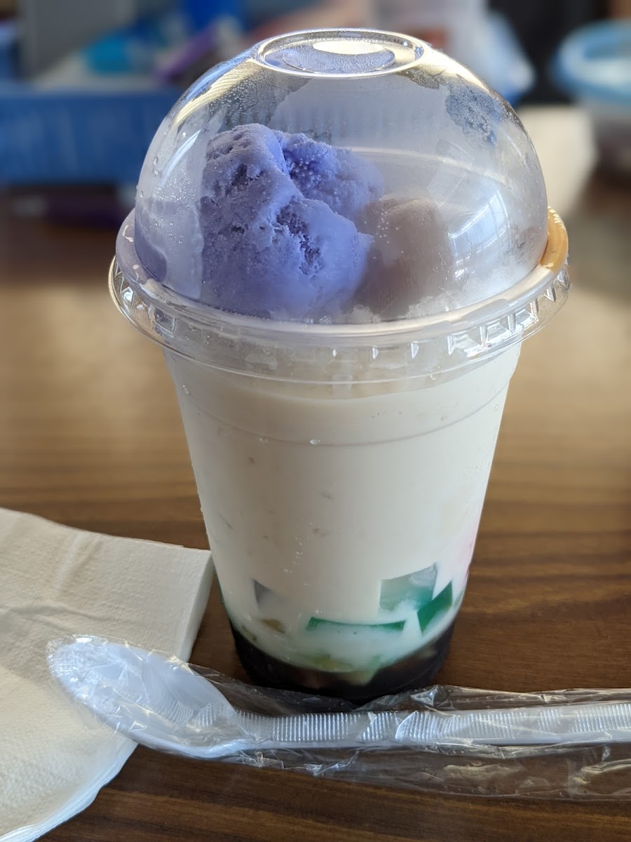 6/10/2022 I've tried Halo Halo at four places total but this is my favorite place for Halo Halo! Why? Because there's a generous scoop of Ube ice cream, a huge chunk of creamy caramel-ly flavored something (don't know what this is but it's good!), and this Halo Halo has lots of tasty, colorful goodies (I only know what the coconut shreds are) in the bottom of the cup to mix with the ice and milk. I don't get to this area often but when I do I need to get this magical dessert! The ladies are always friendly and this place is usually crowded. When I asked, the lady told me the popular item is papaitan. After reading about what this is, I don't think I'm adventurous enough to try it. I'll stick to the #1 Halo Halo! Tip: Can't use charge card for purchases under $10