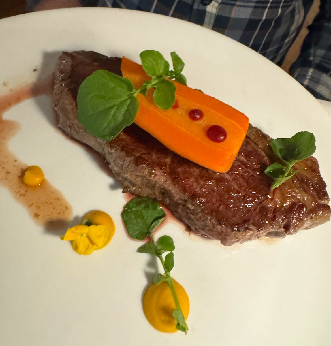 Visited here for the first time with one of my close friends during the middle of the week. We hadn't booked a table and waited in the lounge area for around 10 to 15 minutes prior to be seated. We both chose from the midweek menu which was very good value with 2 courses priced at £15.50. I had the root vegetable soup to start and peppered beef for my main (picture attached) and garlic potatoes as a side dish. Very tasty food with very good service. I was satisfied in terms of portion sizes and dont think I could have managed dessert. It definitely has a fine dining atmosphere with high back chairs etc but I think it also works well for a casual meal. This restaurant evidently has won many awards with the certificates displayed throughout the main dining area which is a nice touch. We never had wine on this occassion but they appeared to have a very good selection. We both found it difficult to park and I think it may be difficult to get a walk in table at the weekend. Overall, good food at a reasonable price in a well established restaurant . A la carte menu looked very good aswell. I'll be back