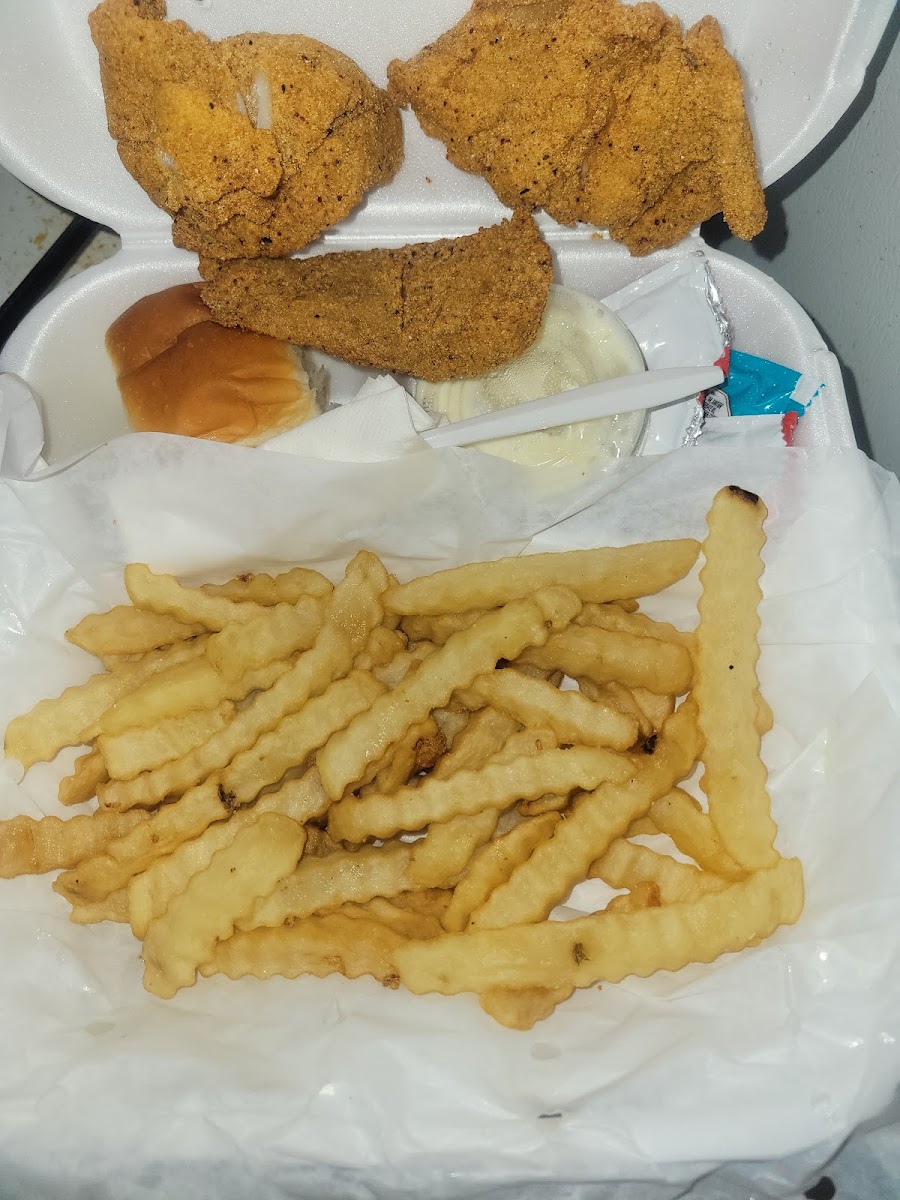 Really Good Food! Fish was crispy and southern fried. I purchased "Red Snapper and Shrimp". The Young Man at the front was so polite naturally.. wasn't looking for a tip..it was a naturally warm attitude.Which I can appreciate being from the South with a short stay here in LA..with all the cold and entitled service I've ran into my few year's here..this young man and the food made me feel like I was back in my small town.. Natural hospitality and damn good food..thank You..and may GOD continue to bless this place