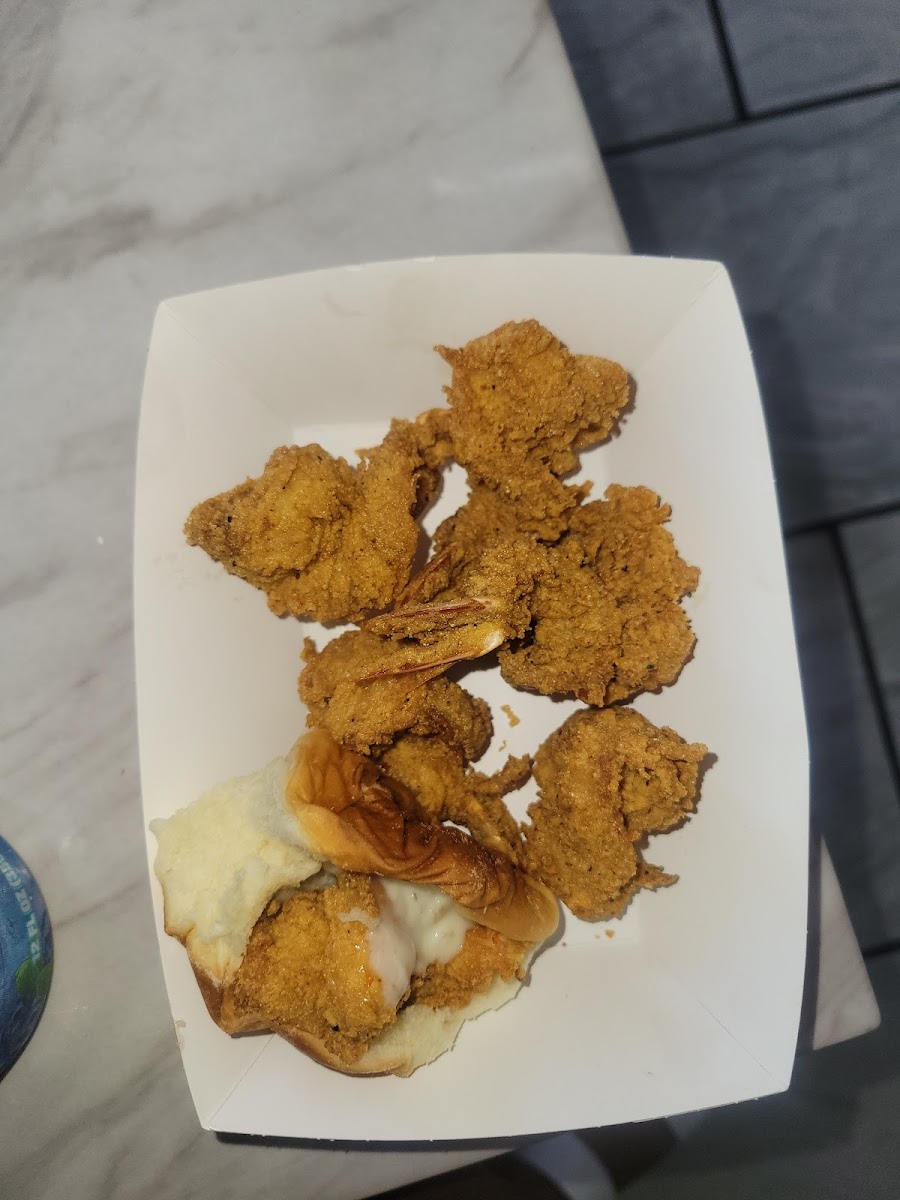 I came here because the reviews were good. So when I told the owner that he was glad to have me. He also provided me with a sample taste 5 shimps and one of them he put in the middle of the roll and some tarter sauce omg so good. The shrimp was so juicy and hot I recommend eating it there not to say it's not good when you get home. I order #15 red snapper which I thought was $15.75 but was charged $16.75 I don't know their menu is a little confusing, so make sure you ask. I ordered double fries for my side orders. And I feel like it could have been a lot more and cook longer there were too soft. But overall the food was a 4 out of 5. I'll upgrade my review when I try the chicken to maybe a 5 star. Great customer service thank you!