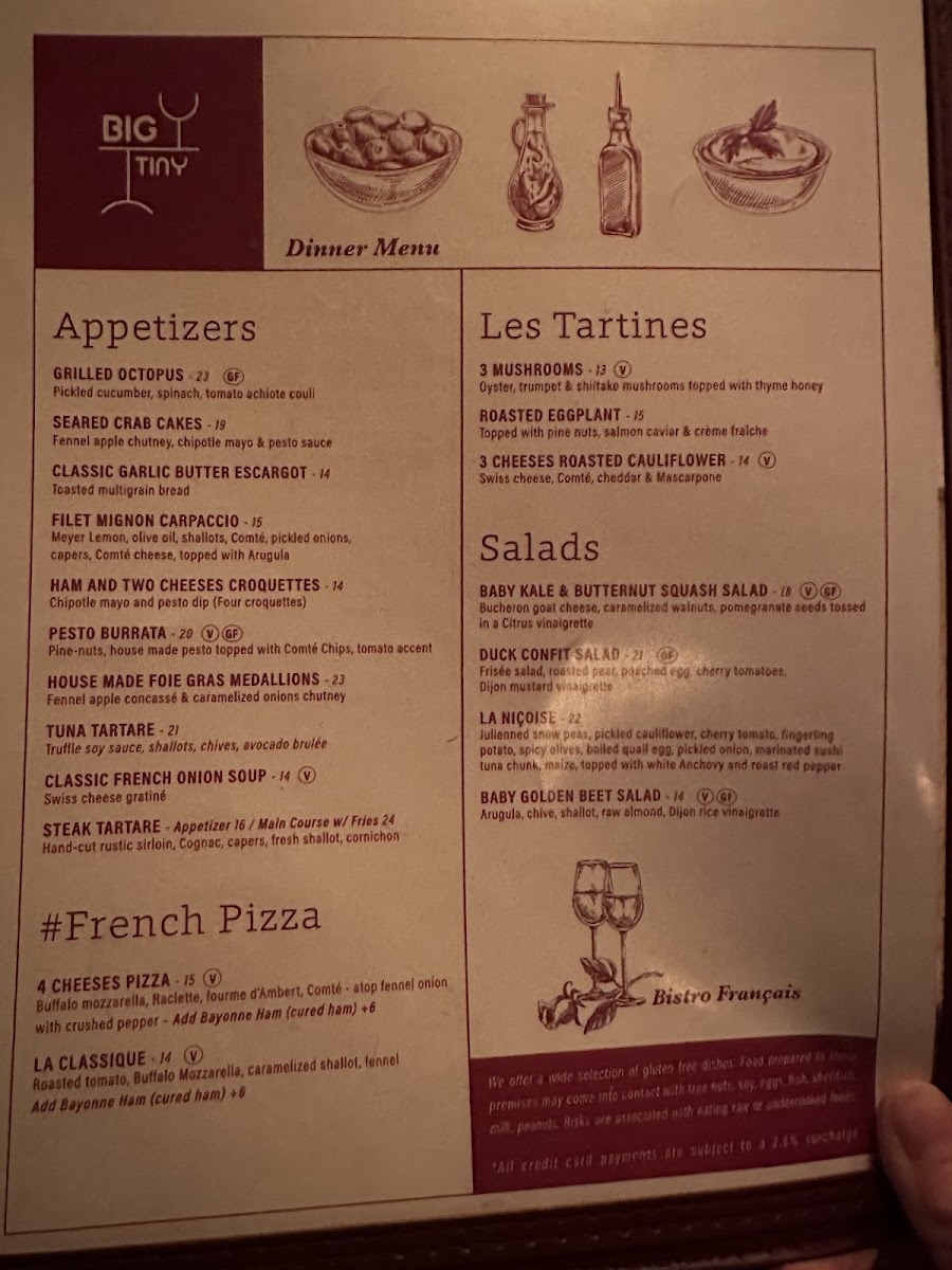 Meyer Lemon, olive oil, shallots, Beaufort ribbon, pickled onions, capers, Comté cheese, topped with Arugula