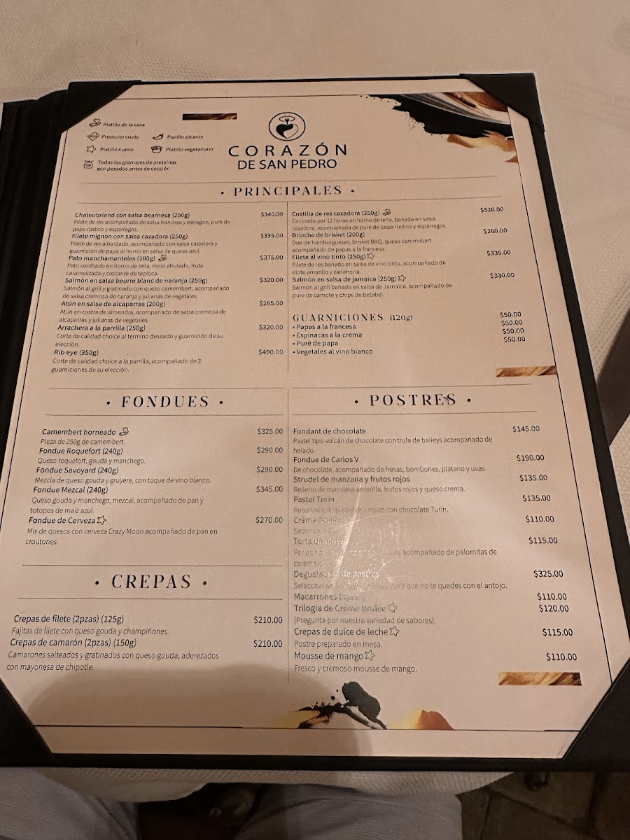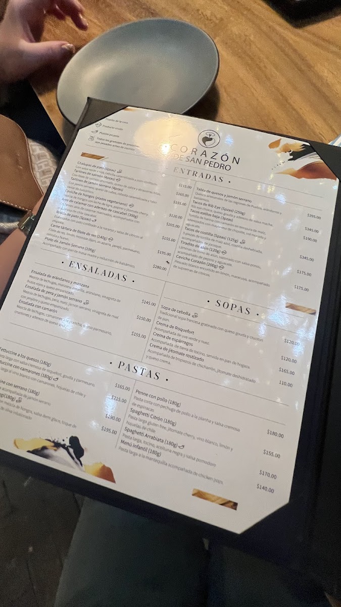 Restaurante Corazon De San Pedro Menu