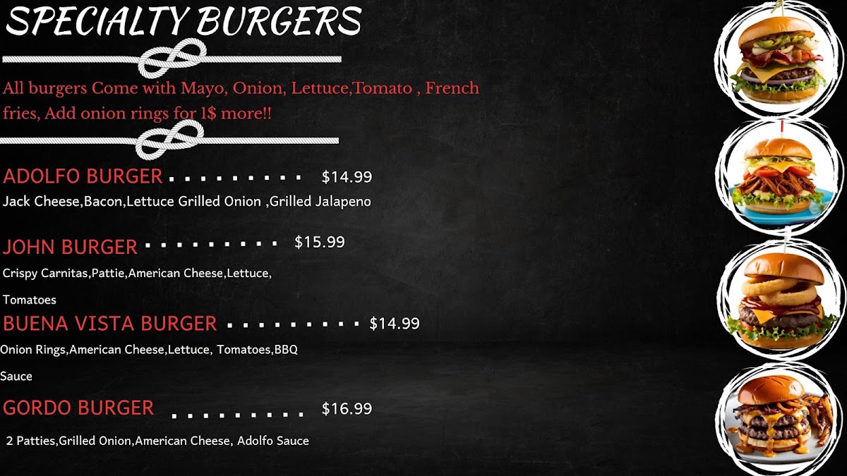 2 Patties,Grilled Onion,American Cheese,Adolfo Sauce
