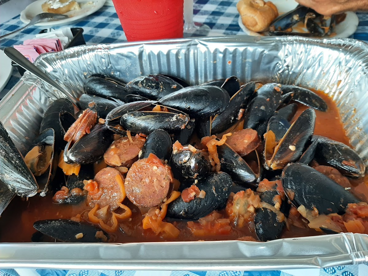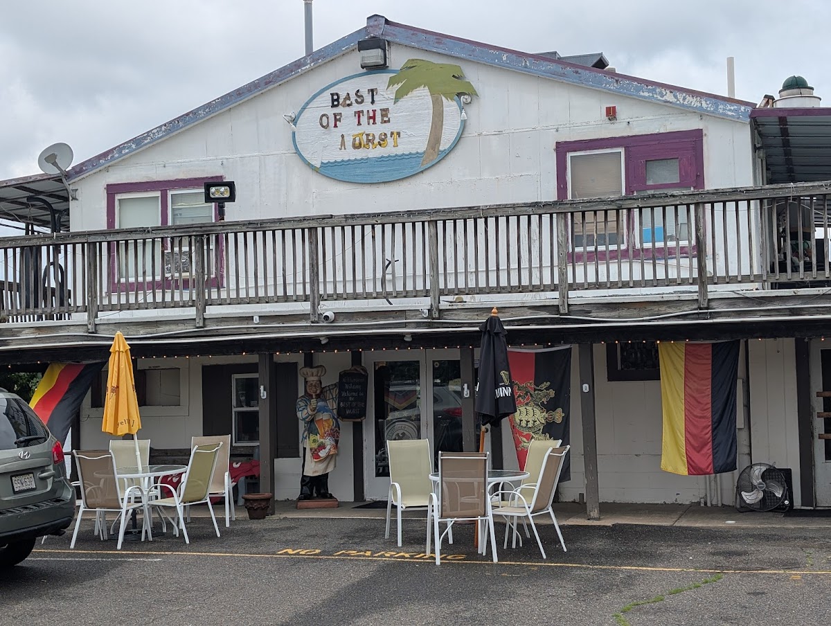 First visit to Best of the Wurst German Kitchen, a hidden gem at 625 Harrison St. in Riverside, behind Lightning Jack's Marina, on the Rancocas Creek. Gorgeous waterside views on an absolutely beautiful night, highlighted by some spectacular food. For appetizers, we requested they go extra, extra spicy on an order of mussels, and the heat level was intense. Didn't count the shells, but there must have been 3 dozen mussels, with sliced kielbasa, a rich, savory tomato-based broth, and a delicious loaf of bread. Loaded potato pancakes are extra crisp, and covered with sour cream, bacon, red onion, and Gruyere cheese, with a side of apple sauce. For dinner, we had their Polish Cheesesteak, which is ground kielbasa, and served with their haus-made cheese sauce on a long roll. Indescribably good. Served with fries that were very crisp without having to ask for them being well-done. Their B.O.T.W. Roast Beef is sliced sauerbraten, with Fontina cheese melted over it, and covered in ginger snap gravy, and it's possibly the best sauerbraten I have ever eaten. The sauce is outstanding, and I wish that I had a gallon of it, right now.