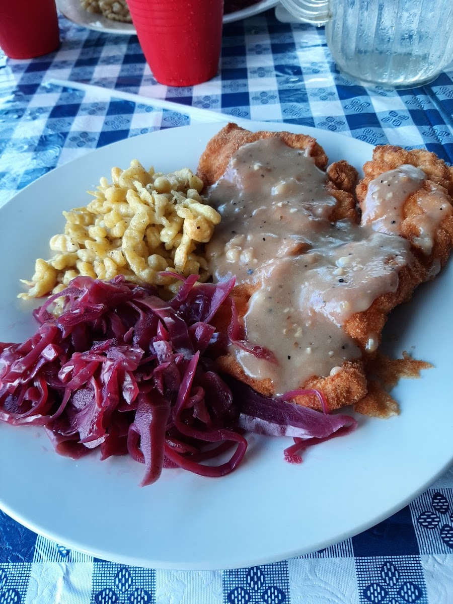 Our first time trying this restaurant. Found it on Google. Despite the strong germanic heritage in the Pennsylvania area, there are not a lot of good German restaurants. This place is situated in the marina that has seen better days. The waitress and the Chef were very personable and they have plans to renovate. We went on one of the icy cold days in the winter and the heat could not keep up. It could use some repainting, but if they are planning to renovate, I understand it. We had loaded potato pancakes, which was an interesting take on a traditional dish. As I recall, it was topped with bacon, onions, and cheese. Potato pancakes were good with a classical taste, and probably would have been better without the topping. I am sure, however, that for most folks this iteration was better. I had a wurst platter with four varieties. All of them were quite good. Probably some of the best german centric sausage that I’ve had recently. The schnitzel was disappointing. It was dry and seemed to be deep-fried instead of pan fried. The spaetzle that accompanied was also unremarkable. There is plenty of parking and we had no trouble finding it using Google maps.