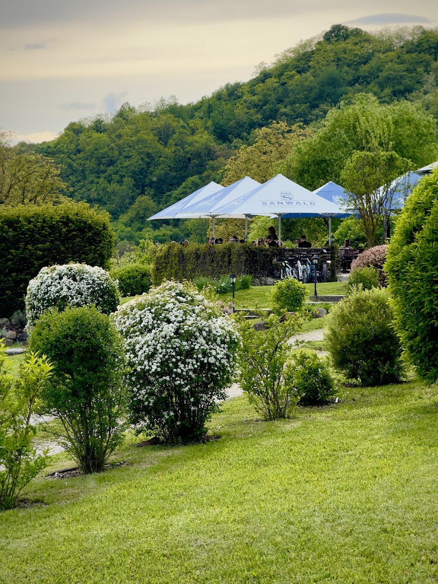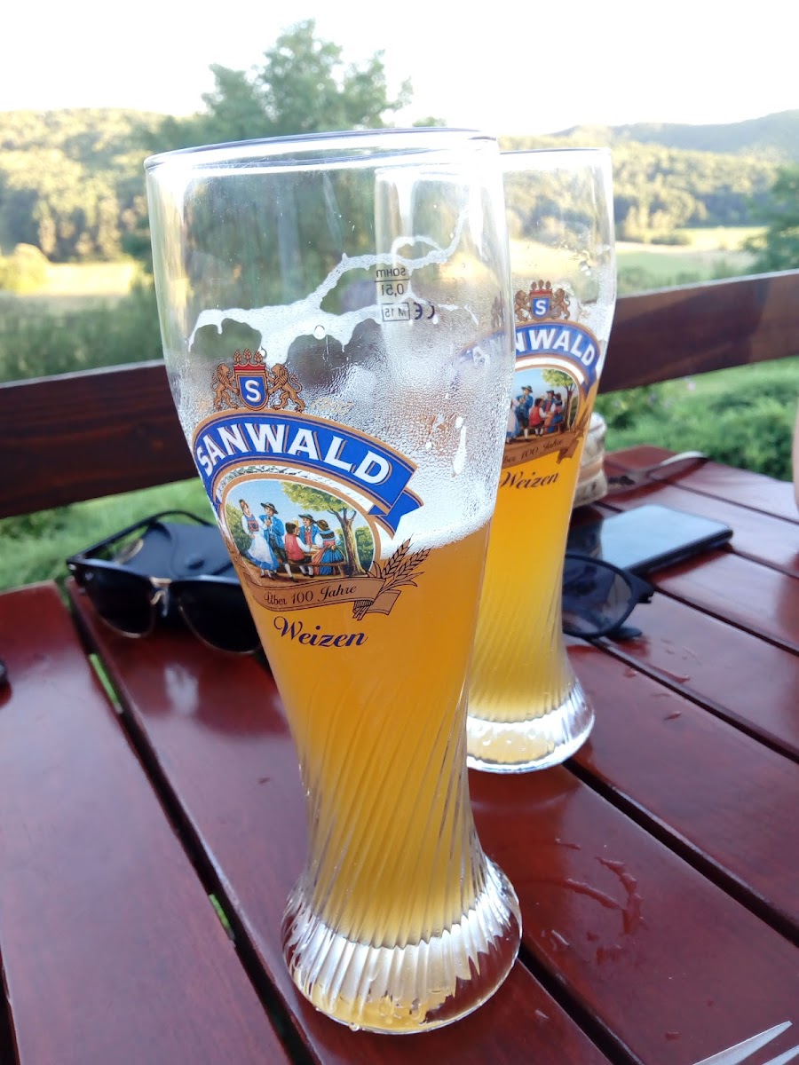 Really good food and selection of German beers which blend perfectly with their menu. Relaxed atmosphere and a lovely view over the surrounding forest.