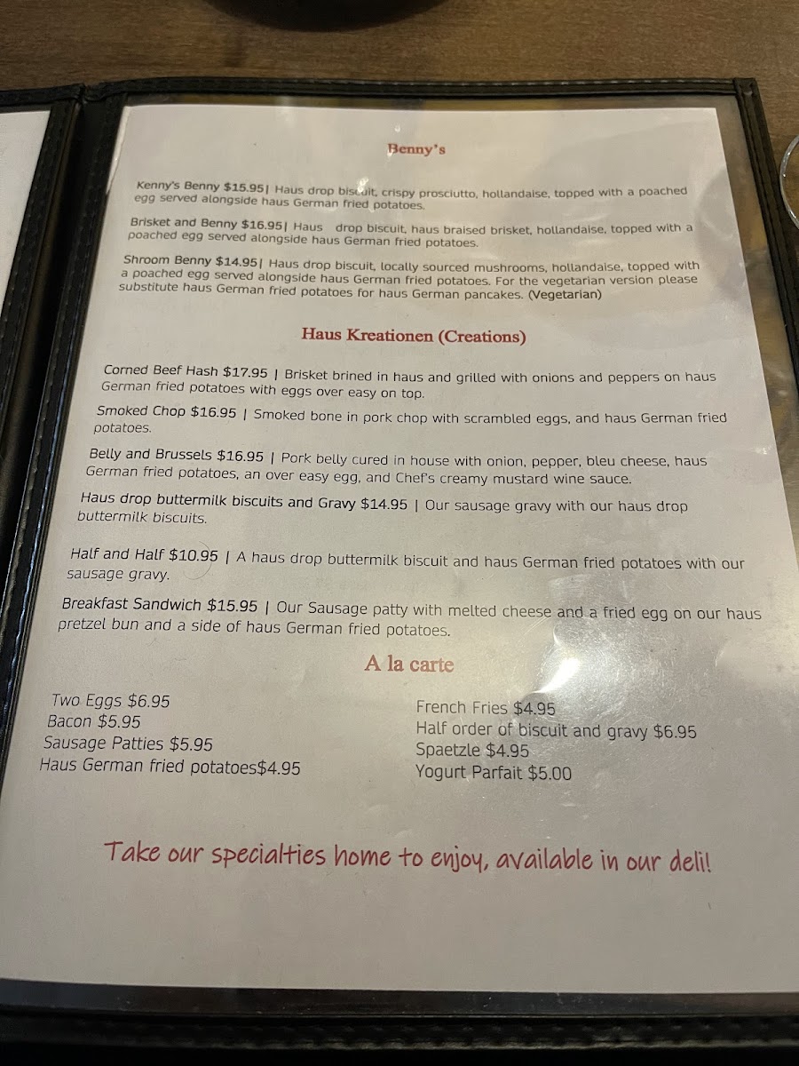 Ground in house brisket with cheese blend, haus mustard, ketchup, and pickles. Served on a haus made pretzel bun alongside french fries.