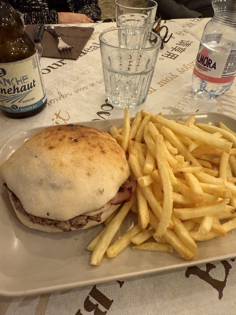 The best gluten free pizza we’ve come across yet - totally indistinguishable from a regular gluten-containing pizza. We loved it and can’t wait to come back. They also have burgers available but no vegetarian option as far as we could see. Really relaxed atmosphere, cost around €25 for two pizzas and two soft drinks.