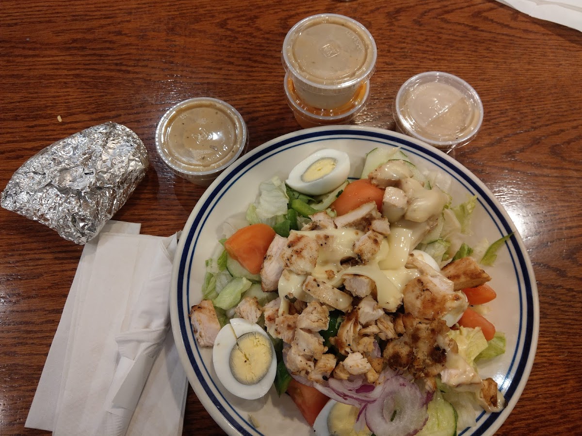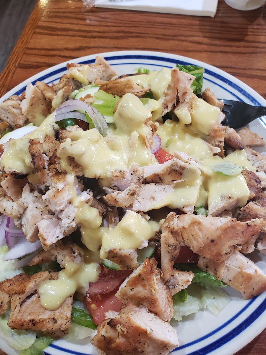 The Greek Lady salad was phenomenal. Really big portion (I had this delivered and ate this for four separate meals, but I think if you're really hungry this could still be at least two full meals). The gyro chicken was moist and well-seasoned and flavors blended well! Great presentation too, especially for delivery.