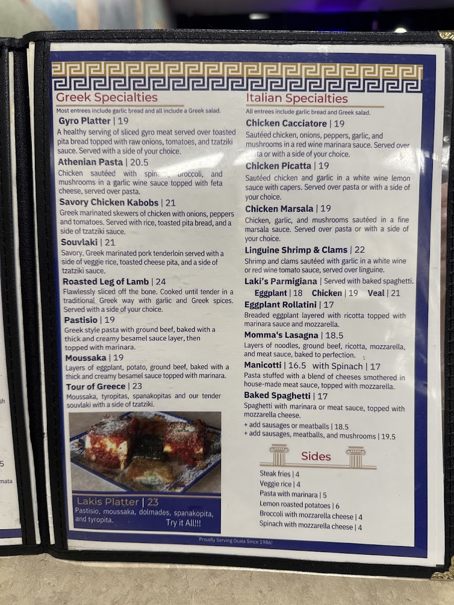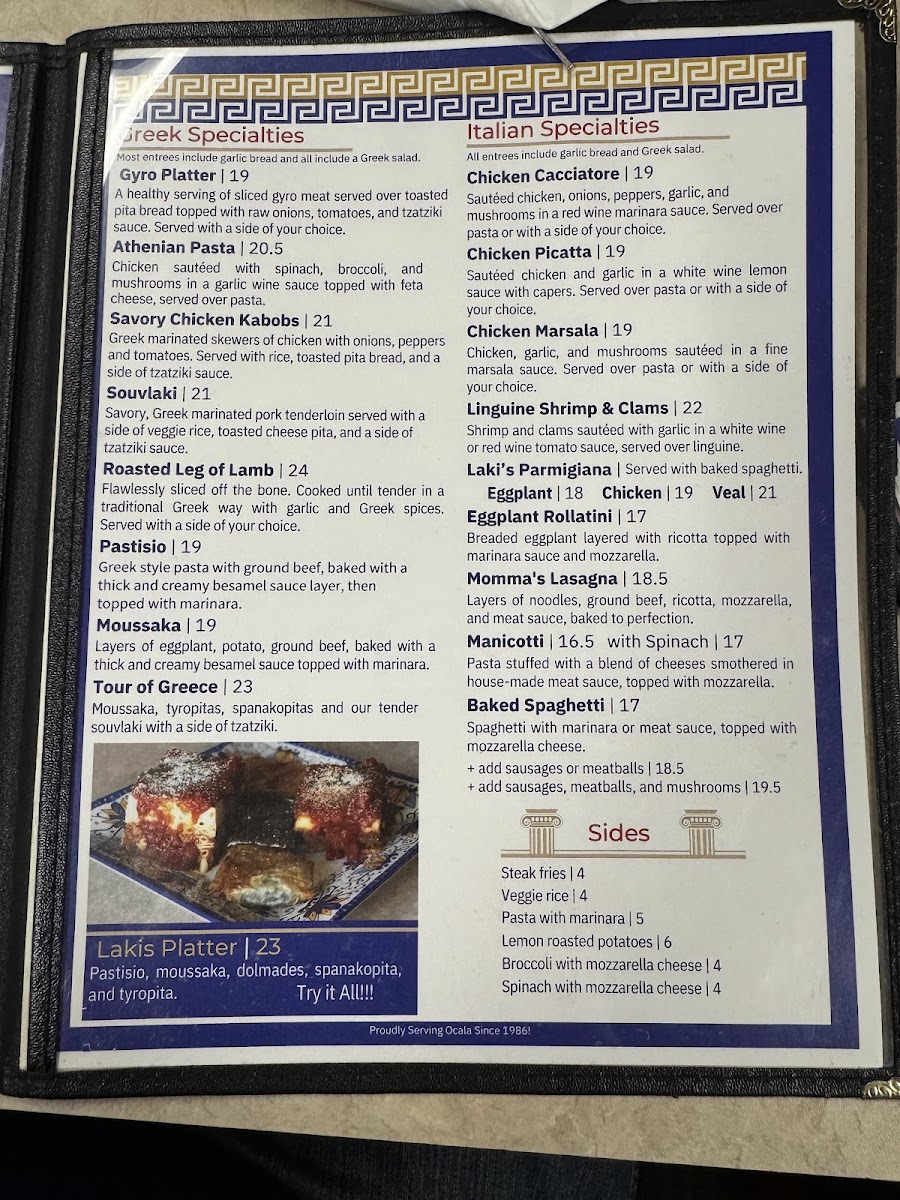 Moussaka, tyropitas, spanakopitas and our tender souvlaki
