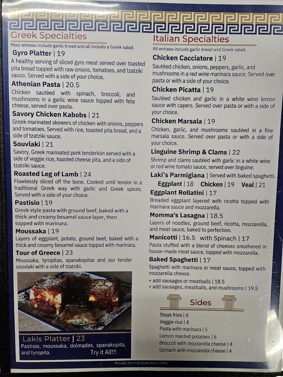 Traditional greek way with garlic and greek spices. Served with a side of your choice