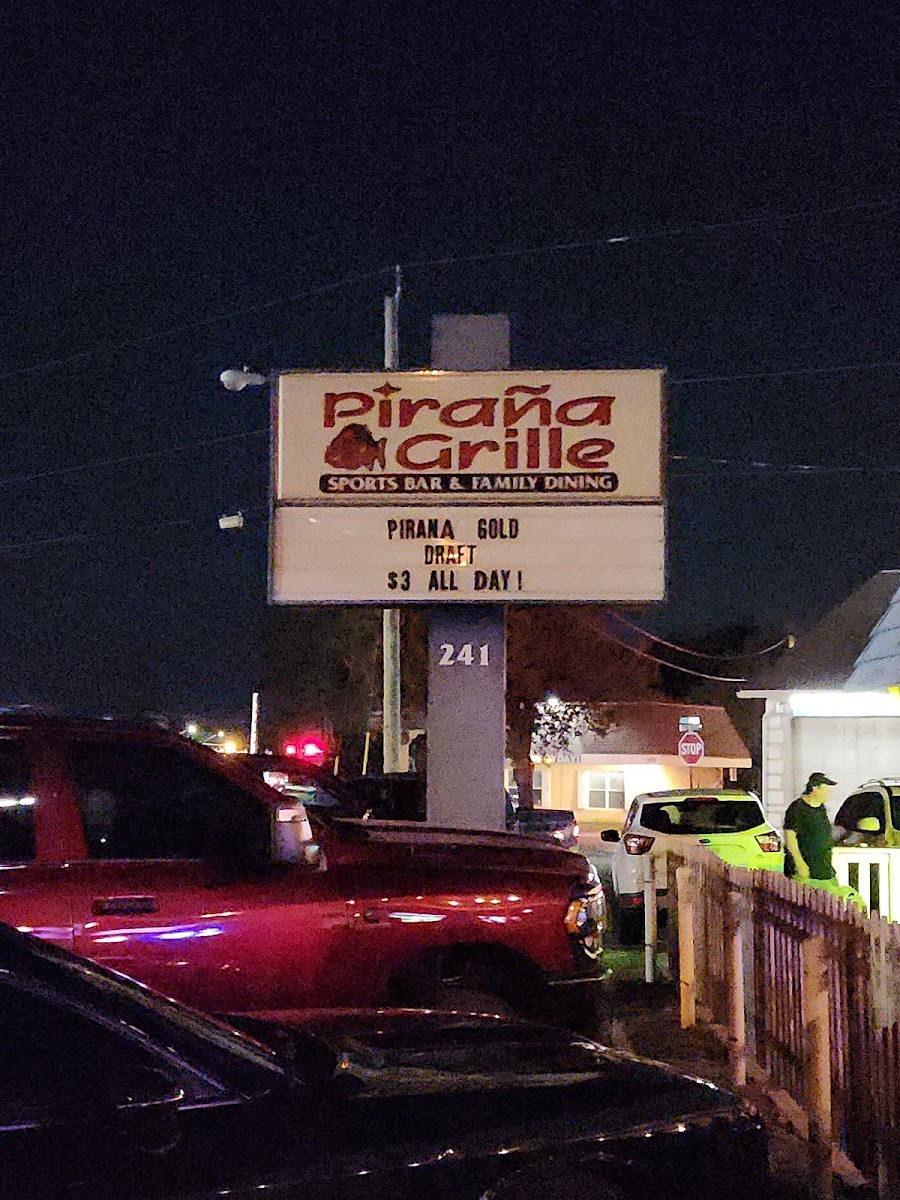 Pirana Grill is a Grill restaurant found at 241 US-1, Ormond Beach, FL 32174, United States. It boasts 1,270 user reviews and a diverse menu that includes Chicken Wings Buffalo Style, Strawberry Salad, Gin and Tonic with Lime, onion rings served as "What Leftover of a Cheeseburger What You See There Is Onion Rings," and the Sticky Burger.