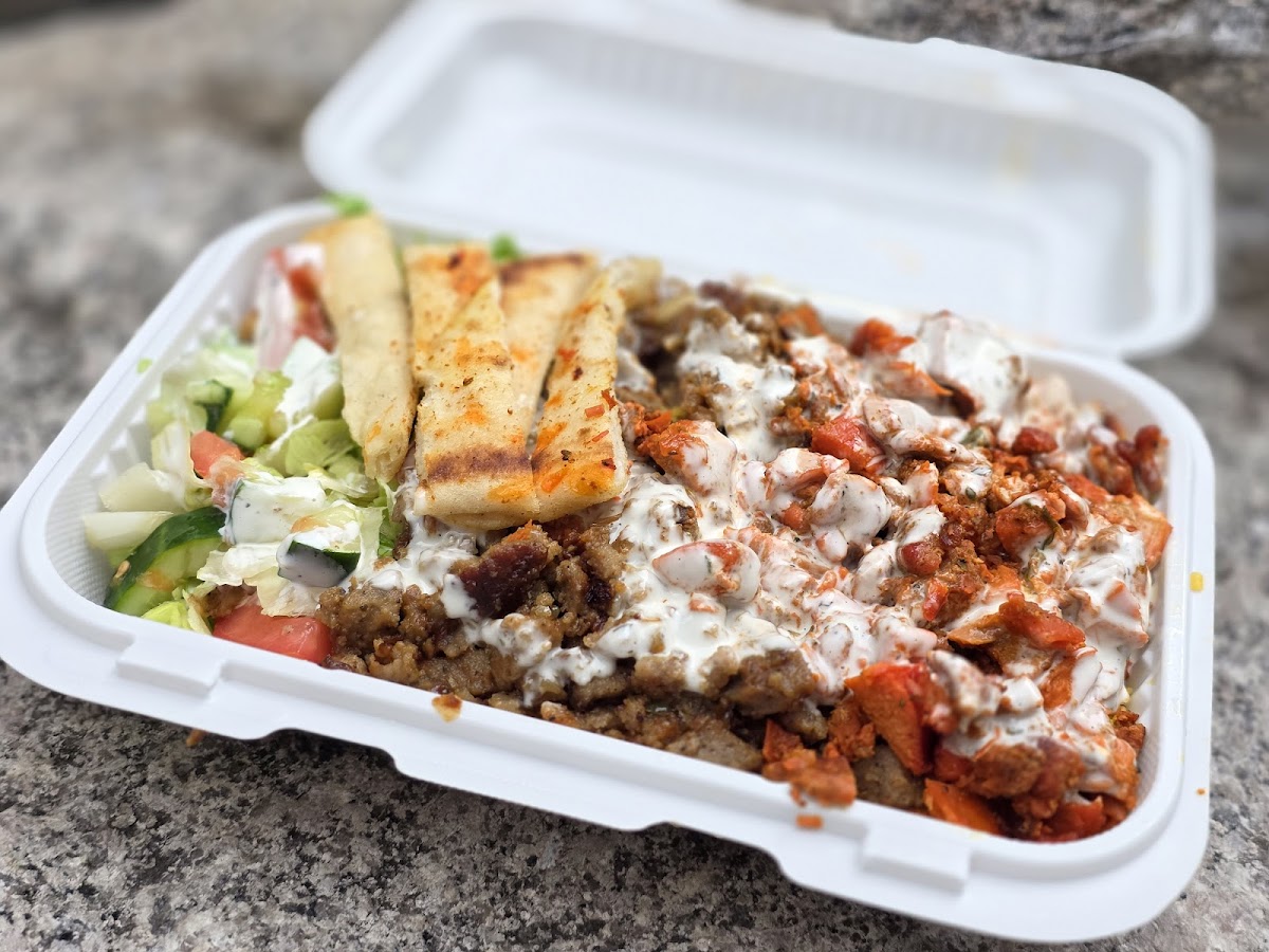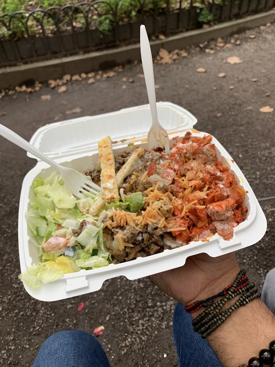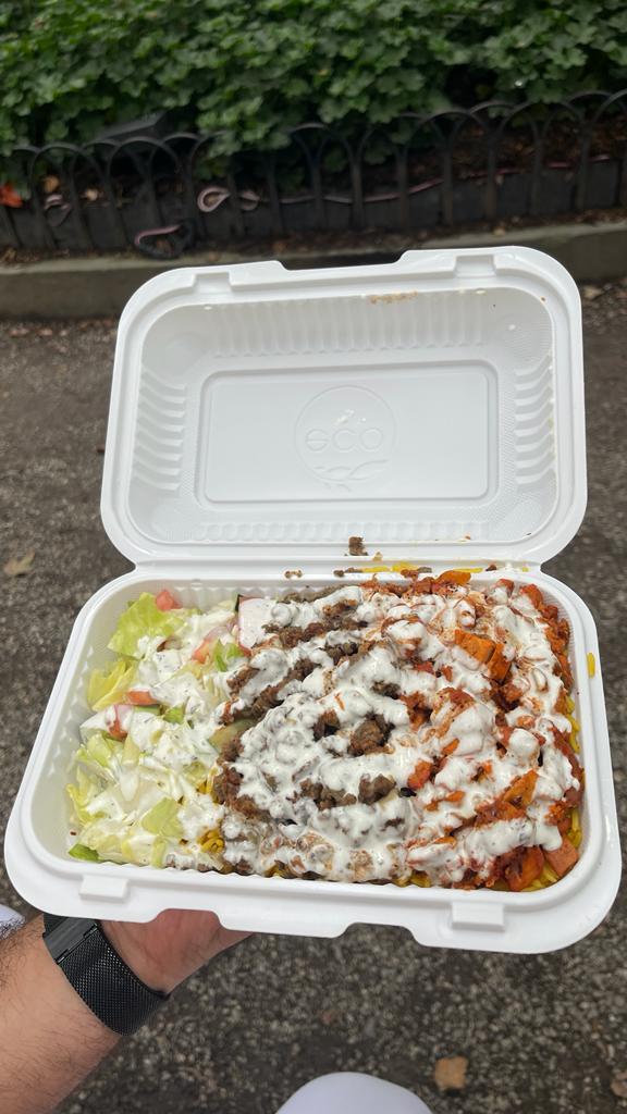 Firstly, the guy who runs this place - what a guy! Such a lovely, kind man. His amazing energy truly made this experience even better. The food is amazing at the price point - $7 for a huge portion! Really delicious rice, lamb and chicken, we loved the really hot hot sauce too. It’s an absolute steal and the owner deserves all the business and success!!