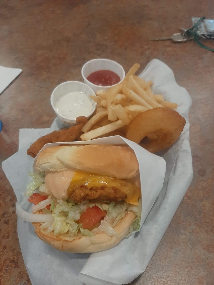 8-24-23 - Bonnie was great and funny. The food was great. We had the crispy chicken sandwich, barney burger, and a tostada with sides of fried beer battered mushrooms. They do not have bacon right now. The bathroom was clean and stocked. If you don't want your meat medium rate, you need to let them know! 1-16-24 - As always, the food and service were great! Bonnie was wonderful. I got nachos with their chili meat, onions, and jalapeños on top and a side of jalapeño poppers (6 count is what comes when ordered). My companions had something new they had called the Sergio with special fries. We love the fries, and I took a bite of their Sergio. It was very tasty! I'll be getting that next time.