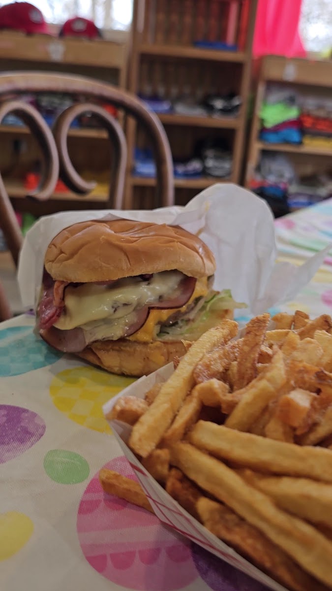 My fav is a bacon cheeseburger with all the fixins, I've ate plenty of burgers, but this burger made my mouth water, with fresh seasoning n fresh fresh veges!! The onion rings r something to brag about, light fluffy seasoned batter with fresh onions, MARVELOUS!! My husband the club sandwich c9mbo his sandwich was huge n a great big portion of fresh sliced fries!! Definitely recommend this place!!