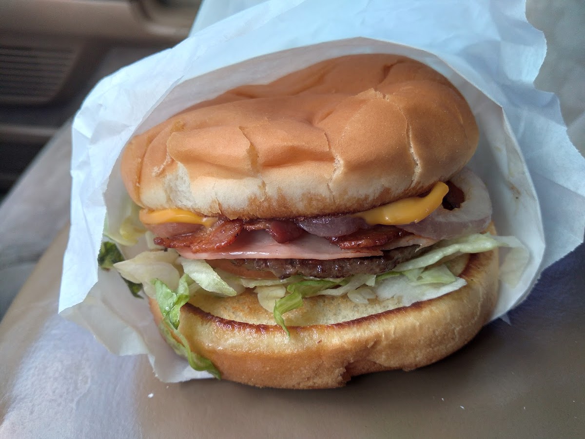 Classic old time burger drive in. Food was exceptional and specialty burgers are huge!!! Onion rings were crisp and tasty. Staff very pleasant. Felt like I went back in time to a laid back real hamburger joint. I loved the old neon sign. If you pass by this is a must eat place!