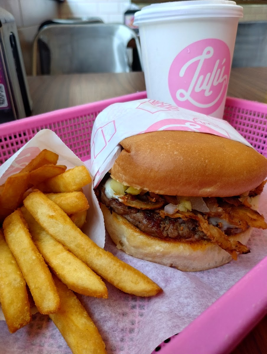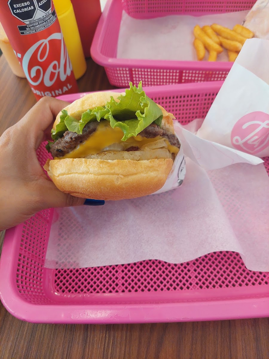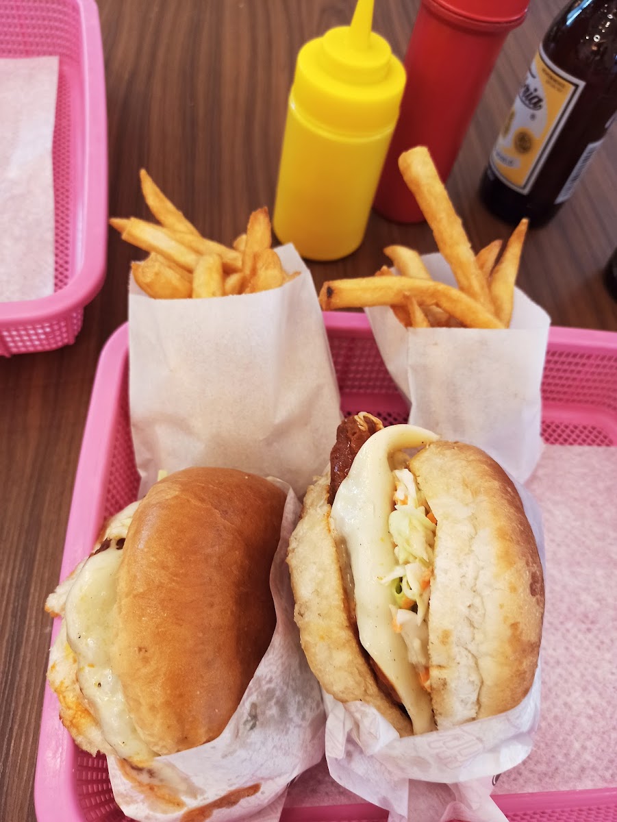Recomiendo pedir alguno de sus Combos (papas, bebida y hamburguesa) en calidad tomen en cuenta que es parecida a las cadenas de comida rápida, aun así están bien, recomiendo la de krispy chicken esta muy buena. El lugar el bonito, son amables y tienen número de WhatsApp para servicio a domicilio