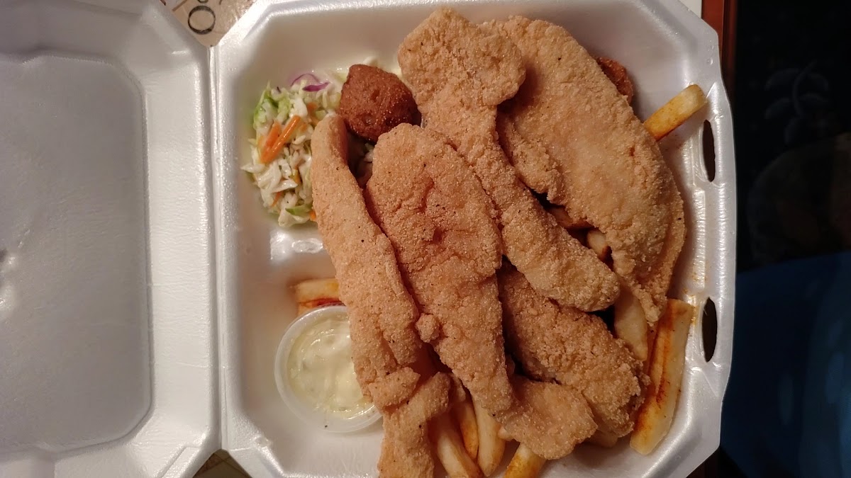 Great food good portions & reasonably priced 5pc catfish hush puppies coleslaw large portion of fries under $15