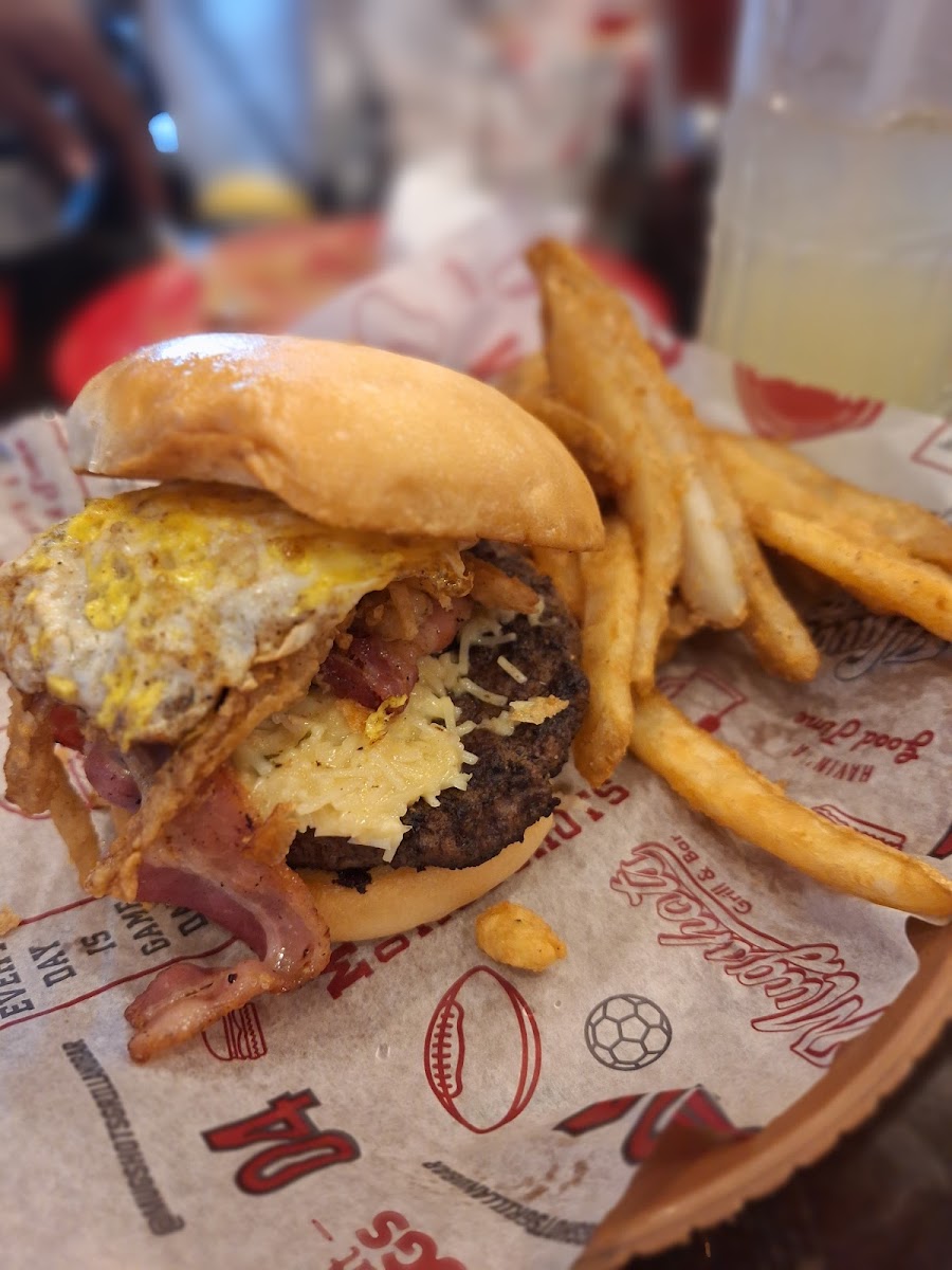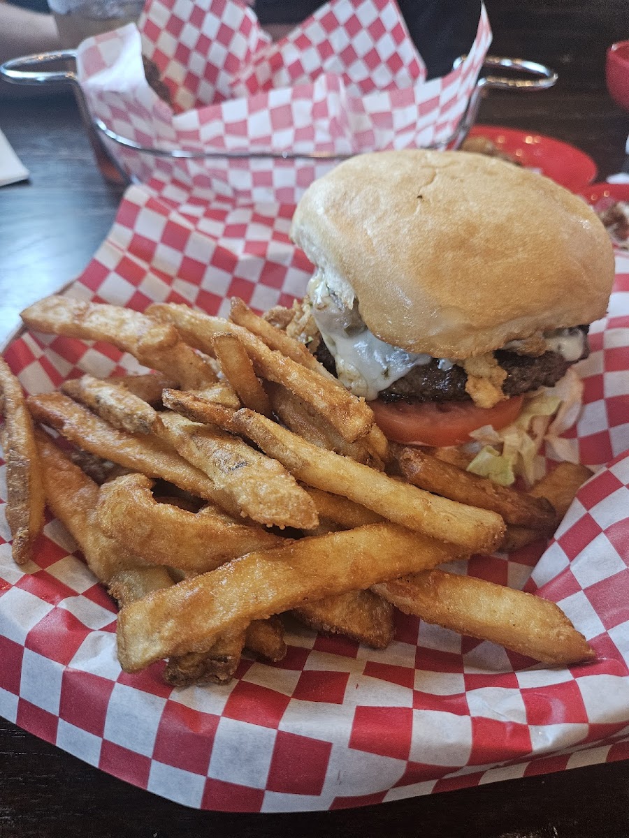 Most recent (July 2025) decided to get a burger. The awesome waitress helped with suggestions, so I went with the Parm-A-Geddon with A-1 sauce. It was really good, but I'll stick with the Philly cheese. Love those. Always great service, cool atmosphere, and really good food. I ordered the Philly cheese with fries. It was excellent. Waitress Jaimee was very attentive to my table and the tables around me.