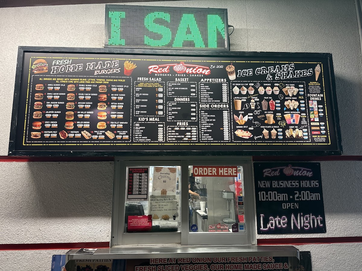 Red Onion is a spot if you want service fast. And your on the go . It's a place to go. The workers there are prompt to you at the line or. Walk up. God is great and the ice cream cone is stacked tall. Very convenient.