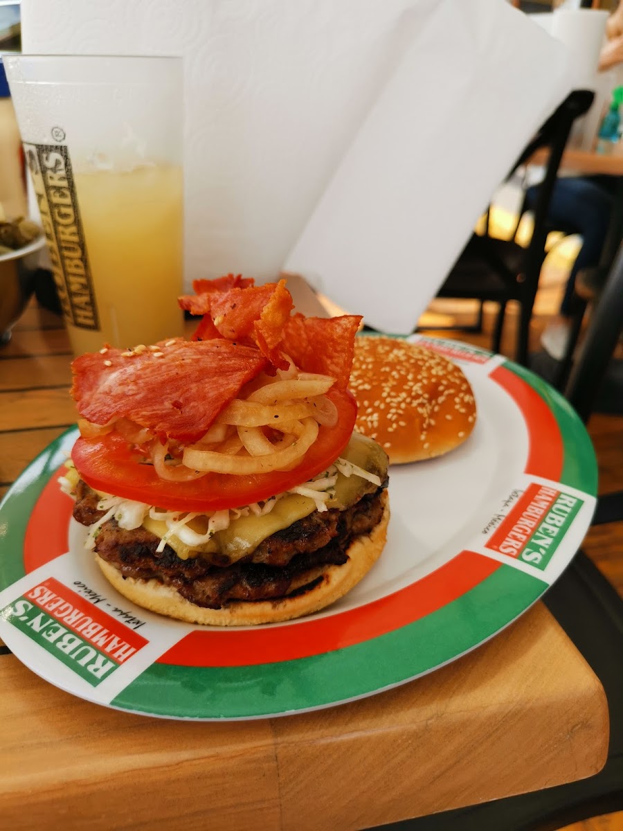 Es un restaurante pequeño, pero con bastantes mesas. Las hamburguesas me parecieron ricas, buen sabor, diferentes tamaños a elegir, buenas combinaciones. Precio - calidad bastante bien. La hamburguesa de sirloin hawaiana está deliciosa, súper recomendable!