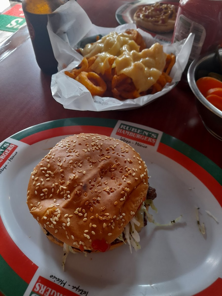 LO BUENO Las hamburguesas están buenas, con buena relación calidad precio. Esta pequeño pero muy agradable, sobre todo la parte de arriba. LO REGULAR 1.- Pedimos unas papitas curly con queso. Cuando pides esto, luego luego te viene a la mente papitas con queso amarillo derretido. Pues en su lugar llegaron con queso manchego, que aunque no está mal, se endurece después de un rato y lo único que queda con queso es la parte superior de las papitas, todo lo demás te lo comes sin queso. Un pequeño detalle Creo que sería mejor con queso amarillo. 2.- Es un lugar pequeño y el baño también es pequeño. (No es como que se pueda hacer algo al respecto) 3.- Creo que tal vez sería bueno que pusieran música con un mejor sistema de sonido. No digo que sea con la música a todo lo qué da, pero la música que tenían sonaba como si estuviera en un radito. En general está bien el lugar y las hamburguesas están muy buenas. No tengo nada malo que comentar