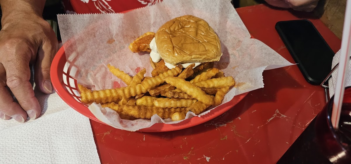 Now this was a hole in the wall diner and OMG is it amazing! If you really want a good Home-cooked grilled burger and hot crispy fries this is the place to go. I got the regular burger and my husband got the double peeps burger with bacon all the way and he could barely finish it. The quality of meat is good and the flavor superior. And the sweet tea will make you pucker. I'll take this over fine dinng any day! A southern gem!